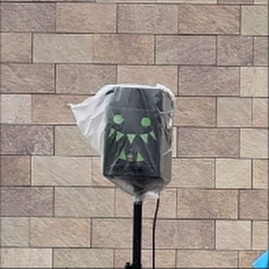 そして雨の中機材が壊れないようにスピーカーに被せられたビニールには養生テープでパンプキンのような装飾に🎃